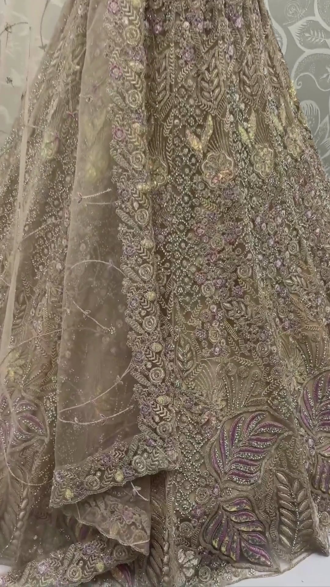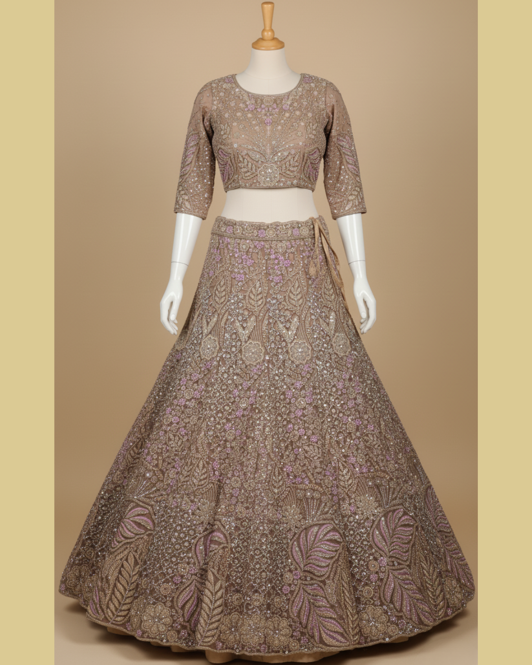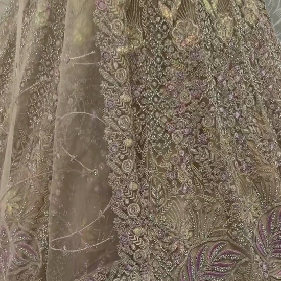 A gorgeous sparkly lehenga made for the reception of your dreams. This stunning lehenga features all over embroidery, sequin and crystal work with contrasting purple accents.